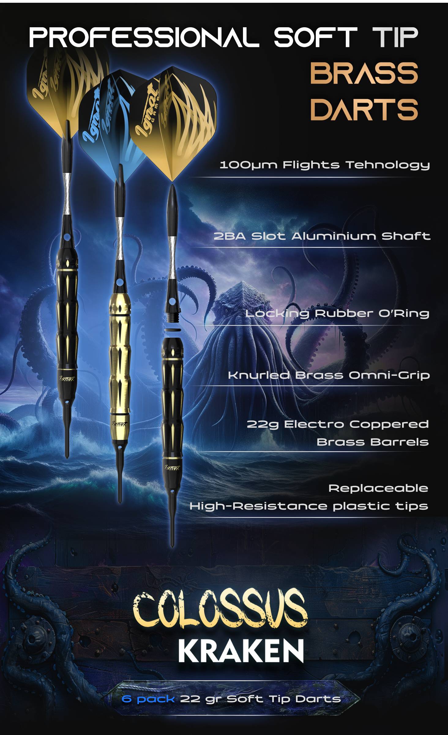 Soft Tip Darts 6 Pack Set - Colossus Kraken 22 grams