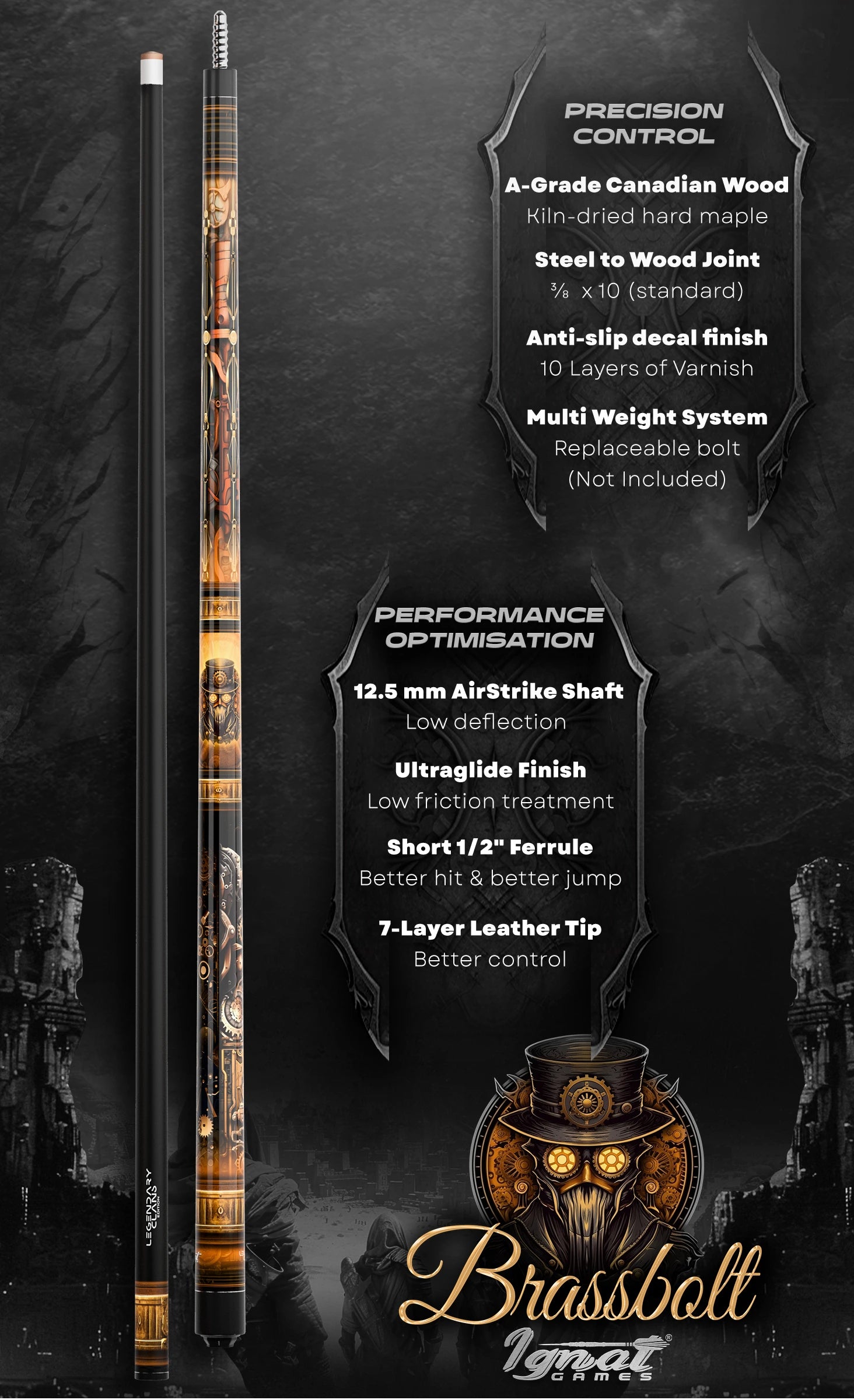 Includes a dual-compartment case with room for shaft, cue, and essential accessories.