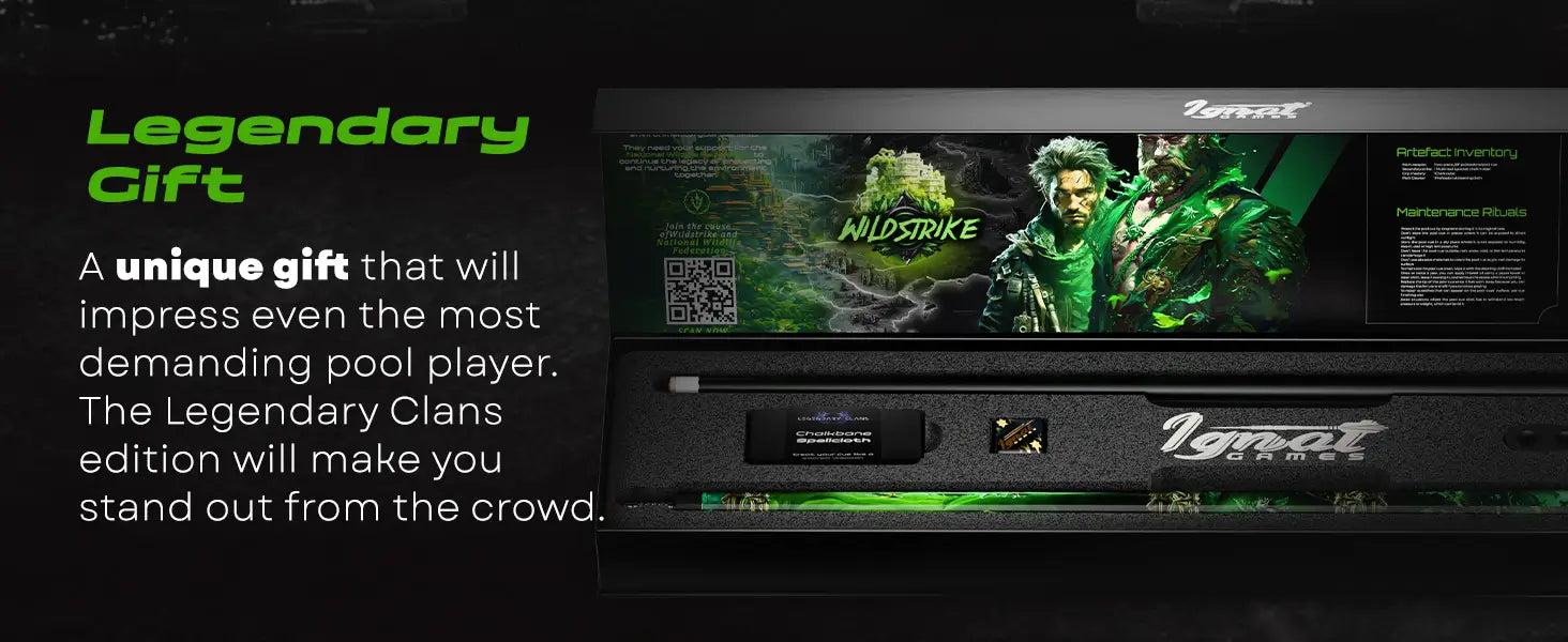 • Green Force United – 3% of every Wildstrike pool cue purchase supports the National Wildlife Federation. By joining the Wildstrike, you’re not just becoming a respectable clan member—you’re contributing to the protection and preservation of wildlife and their natural habitats. Together, we can make a lasting difference for our planet.