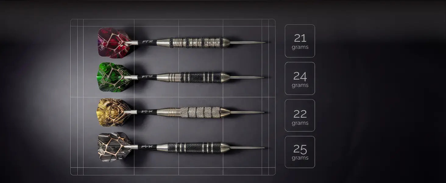 • Fully customizable setup: Mix 4 barrel weights (21g/22g/24g/25g) with 2 flight shapes (Slim + Standard No.2) to dial in speed, stability, and control for your technique.