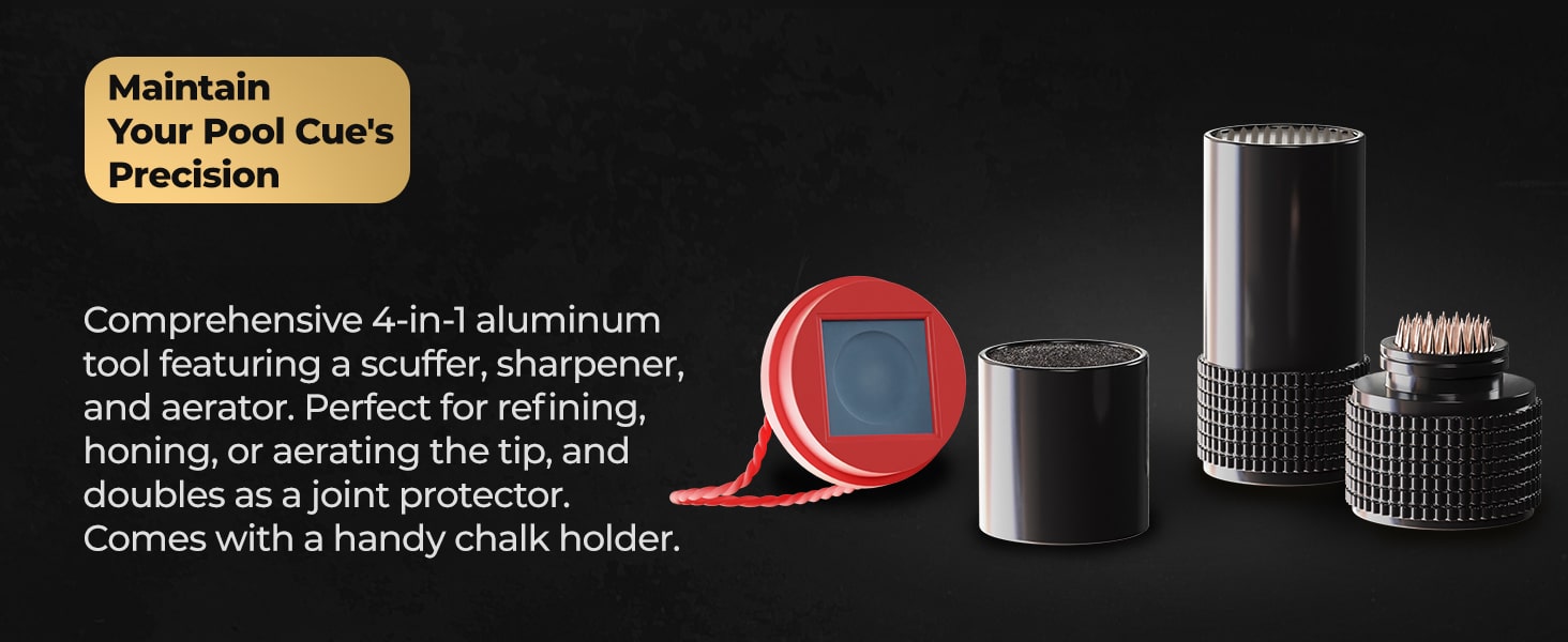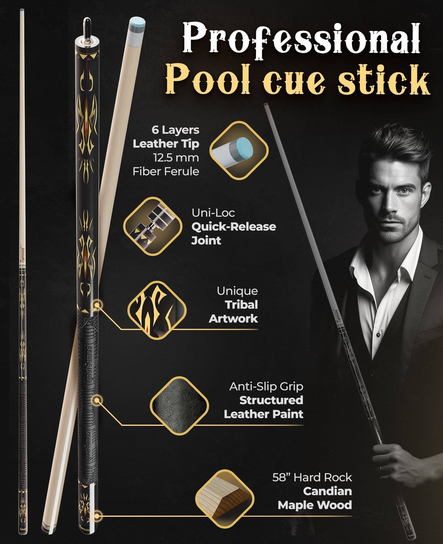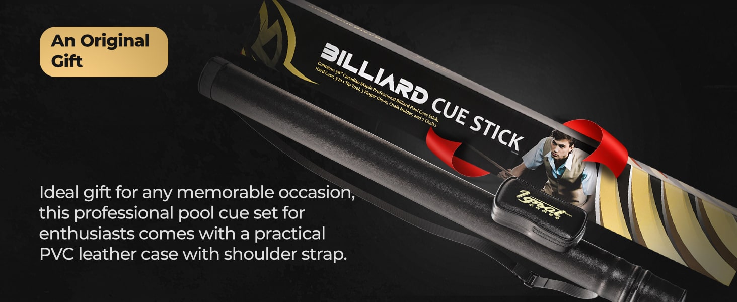 Includes hard case, tip tool, chalks, glove, and holder – everything needed for play, care, and cue maintenance.