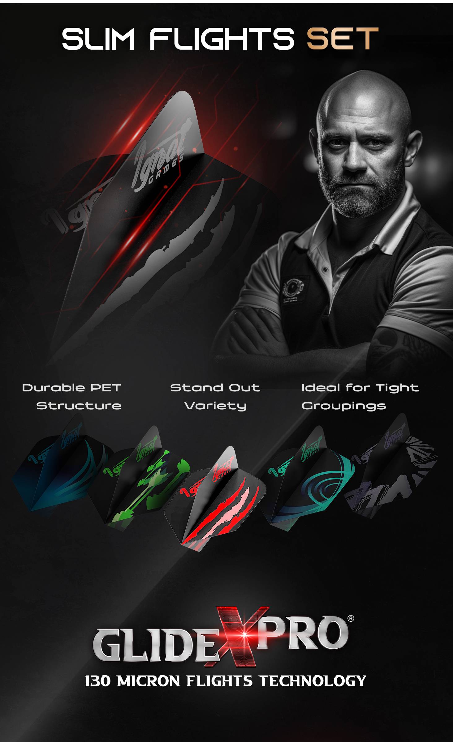 All 30 flights have a streamlined Slim shape (26 mm²) for faster throws, lower drag, and improved dart speed and accuracy.