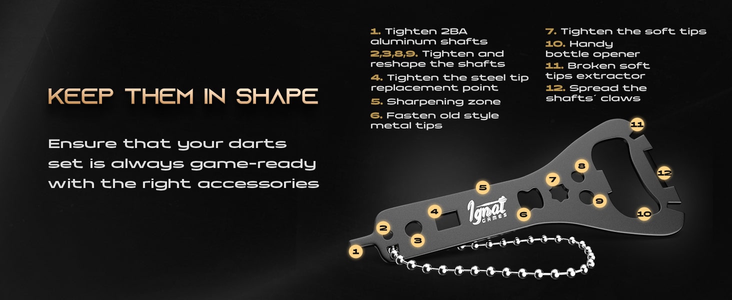 Comes with flight protectors, O-rings, and a multi-tool for quick fixes, better grip, and tip or shaft adjustments on the go.