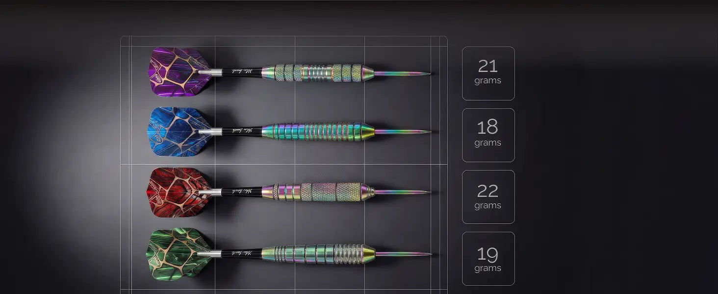 • Fully customizable setup: Mix 4 barrel weights (18g/19g/21g/22g) with 2 flight shapes (Slim + Standard No.2) to dial in speed, stability, and control for your technique.